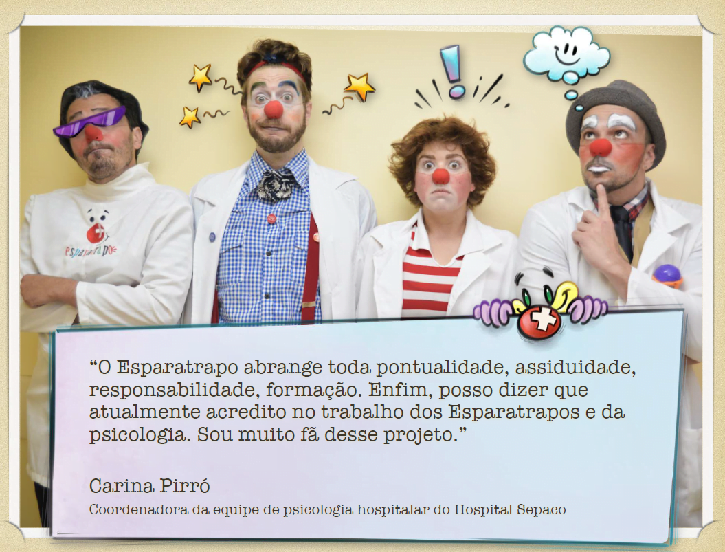 A associação Esparatrapo, fundada em fevereiro de 2012, é composta por palhaços profissionais que atuam em hospitais, casas de apoio, entre outros, transformando o clima destes ambientes através do riso.